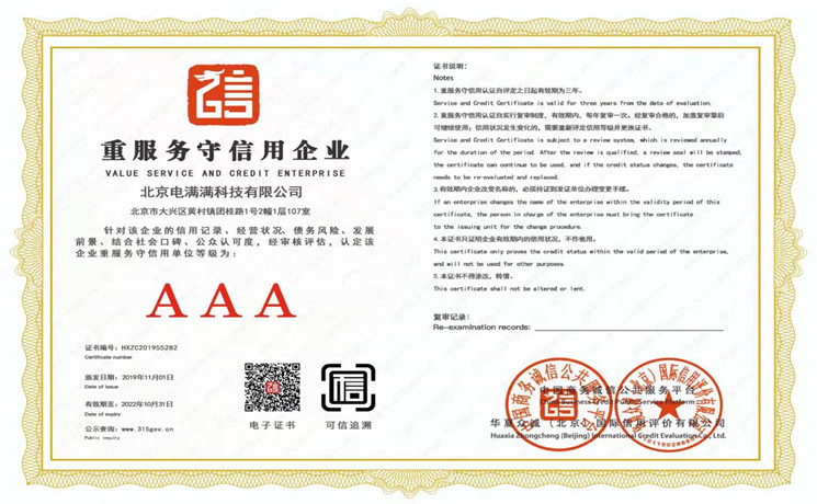 2020年1月13日通过质量管理体系认证。